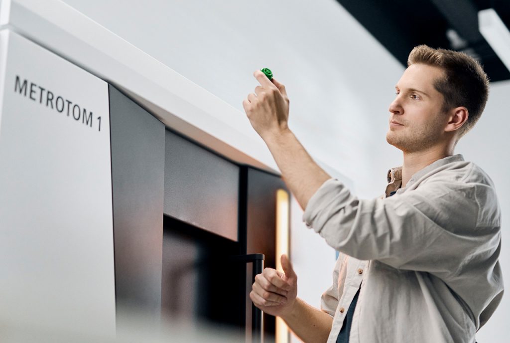 Der ZEISS METROTOM 1 ist ein kompaktes, hochwertiges CT-Scanning-System, das hochpräzise 3D-Daten erzeugt – ohne Bauteilvorbereitung und voll zerstörungsfrei. Durch moderne Computertomografie-Technologie ermöglicht er die vollständige Erfassung sowohl externer als auch interner Strukturen von Bauteilen und legt verborgene Defekte offen. In Verbindung mit der leistungsfähigen ZEISS INSPECT Software werden Mess-, Analyse- und Inspektionsprozesse in der Qualitätssicherung deutlich effizienter und reproduzierbarer.